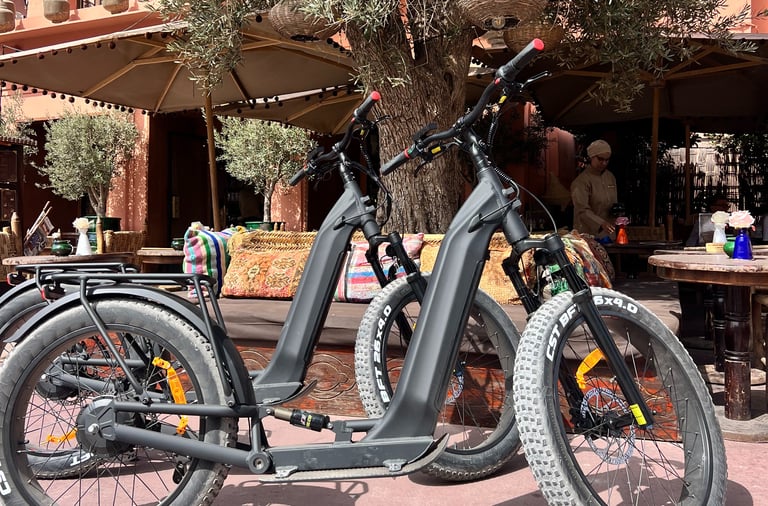 Partez à l'aventure avec nos excursions en trottinette électrique tout terrain et (re)découvrez Marrakech d’une manière unique, ludique et écoresponsable. Que vous choisissiez les ruelles animées de la médina ou les paysages apaisants de la palmeraie, chaque parcours vous promet une immersion totale dans l’authenticité marocaine.