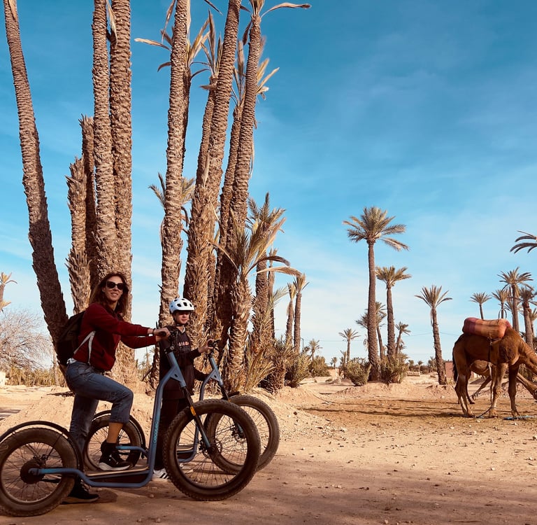 Set off on an adventure with our off-road electric scooter tours and (re)discover Marrakech in a unique, fun, and eco-friendly way. Whether you choose the lively alleys of the medina or the peaceful landscapes of the palm grove, each ride promises full immersion in Moroccan authenticity.